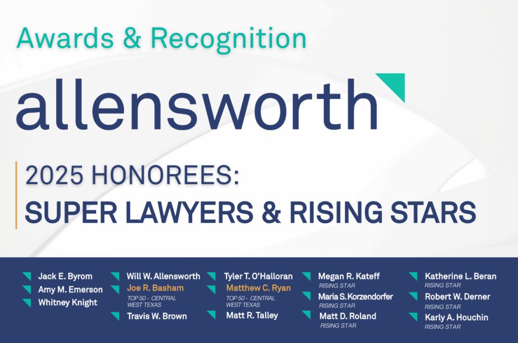 We’re pleased to share that several of our lawyers have been named to the 2025 Texas Super Lawyers and Rising Stars lists. This recognition reflects the steady, client-focused work our team performs every day – and the confidence our peers and clients place in us to achieve results that protect the best interests of those we serve.