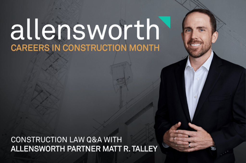 To shine a light on this often-overlooked side of the industry, Allensworth partner and transactional construction attorney Matt Talley shared his experience in construction law. In this Q&A, Matt discusses common misconceptions about his practice, the challenges and opportunities facing new professionals, and how shifts in the Texas construction market, technology, and the economy are reshaping the legal side of construction.